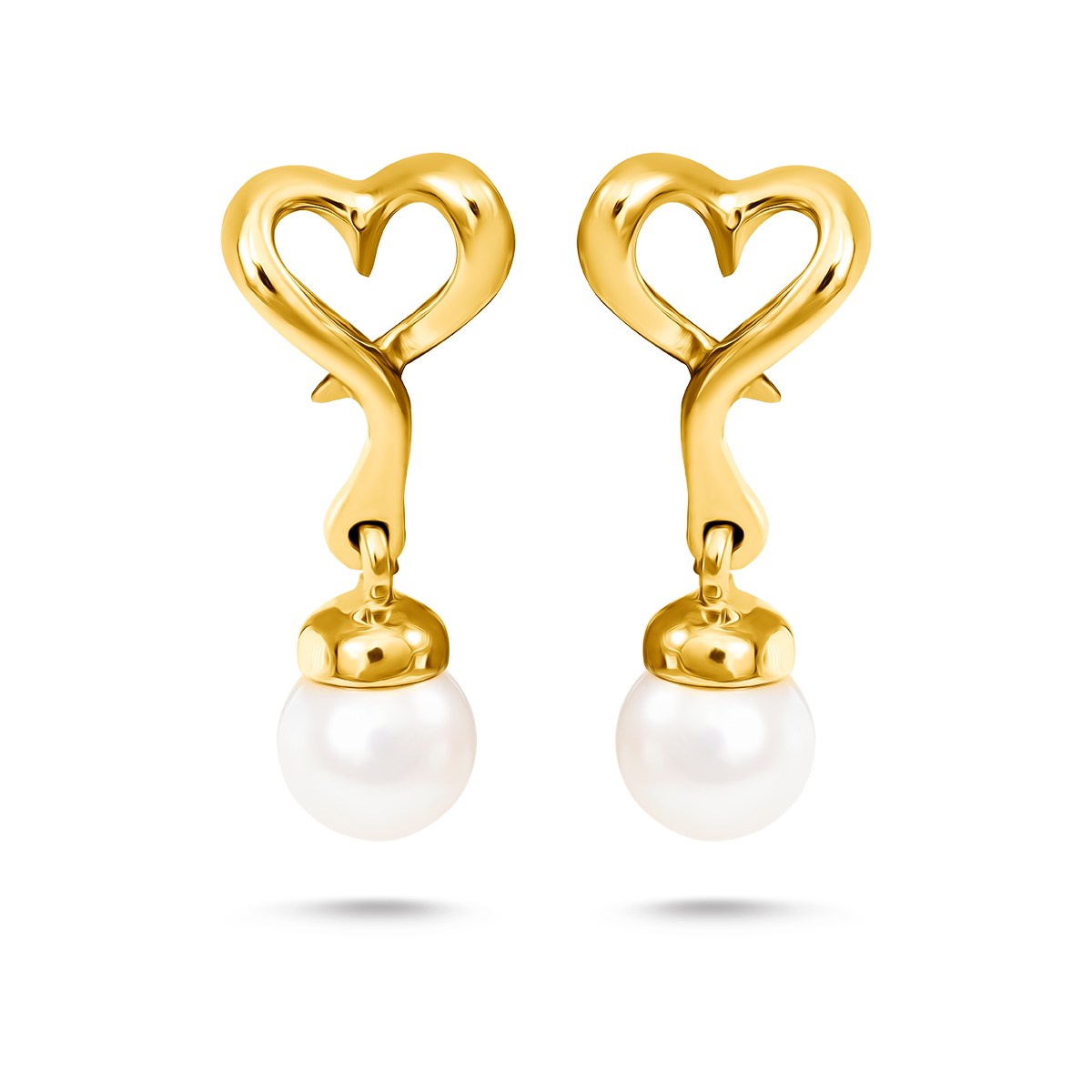Minđuše koje će upotpuniti kolekciju nakita svake dame od stila imaju dva upečatljiva dela. Zlatan u obliku srca, koji leži tačno na ušnoj resici, i deo sa sjajnim belim biserima. Zlatna nit je savijena u oblik srca i na donjem delu je alkom povezana sa zlatnom kapicom koja drži biser. Ove minđuše unose i veselost i eleganciju u svaki stil koji odaberete. Lako se mogu kombinovati sa ostalim bisernim nakitom iz Andrejević ponude.