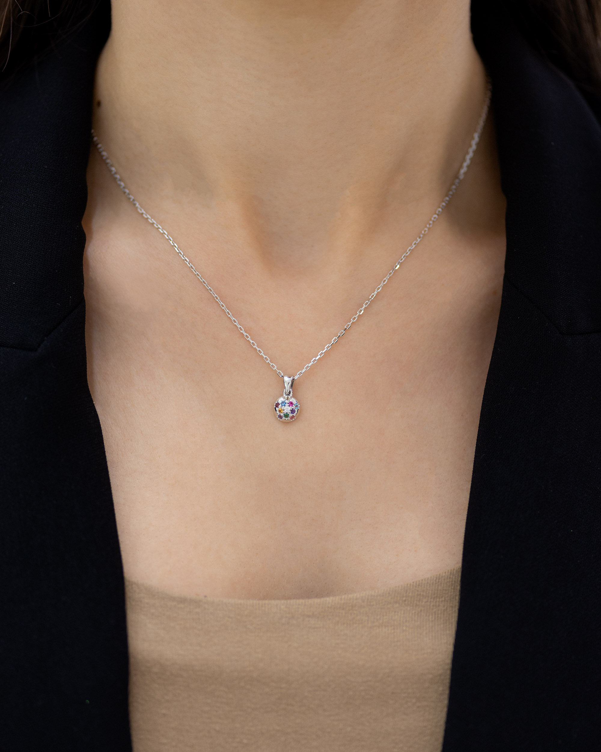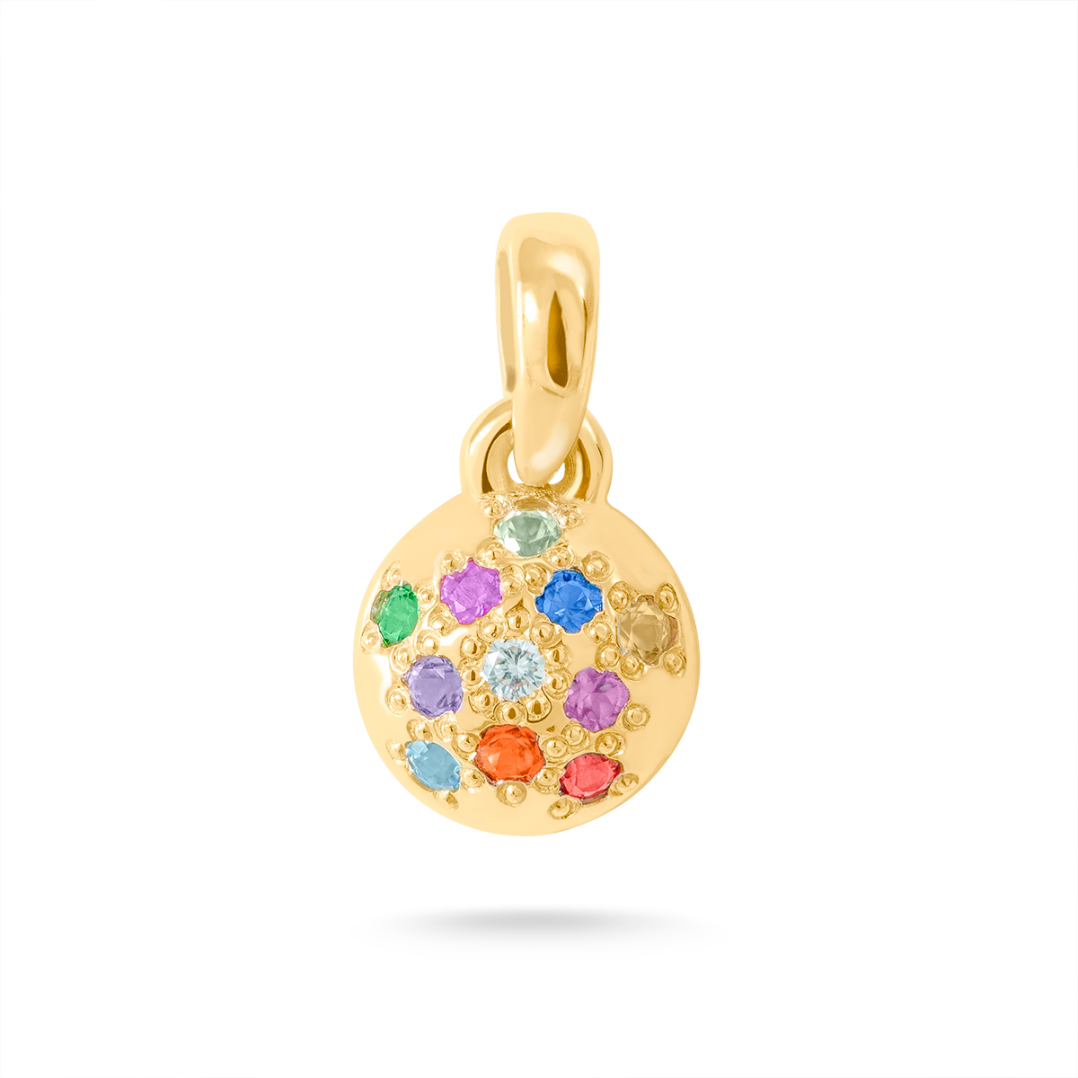 Privezak od zlata u obliku kuglice ukrašen je sa čak 11 raznobojnih dragulja izuzetnog sjaja. Privezak Tutti Frutti kuglica ima klasičnu alkicu kroz koju može da prođe lančić srednje debljine. Privezak je izrađen od 14-karatnog zlata izuzetnog sjaja i kvaliteta dok je 11 dragulja raspoređeno po njegovoj površini, dok je dijamant u samom centru. Zlatni privesci zlatare Andrejević mogu biti izrađeni u bilo kojoj od 3 boje zlata: beloj, roze, ili žutoj, a kombinaciju boja zlata možete sami da odaberete. Uz to, u zlatari Andrejević, nudimo Vam mogućnost da sami izaberete karatažu, čistoću i boju dijamanta kako biste bili sigurni da će privesci biti upravo onakvi kakve ste želeli.