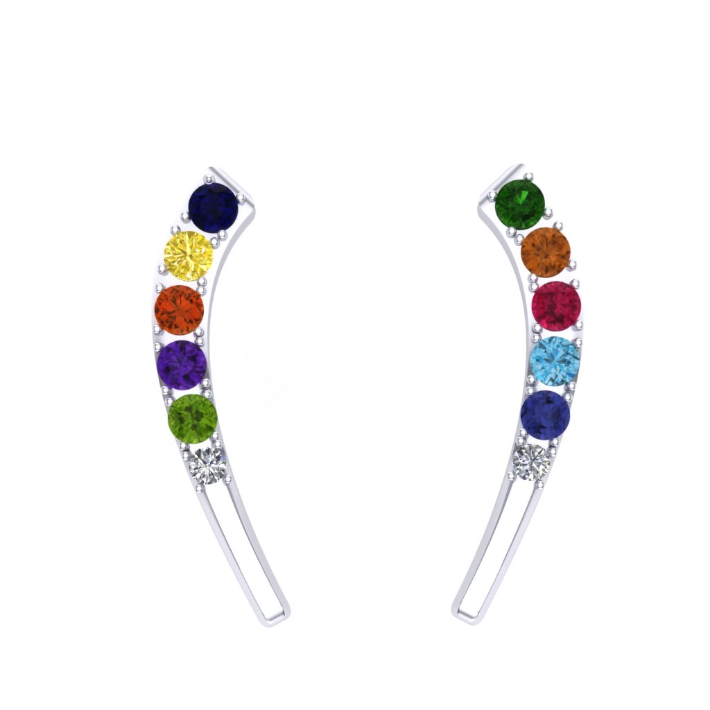 Minđuše od zlata u obliku zareza iz čuvene kolekcije Tutti Frutti, ukrašene raznobojnim dragim kamenjem. Ove zlatne minđuše su blago zaobljenog oblika i pričvršćuju se klasičnim šrafićima. U zlatari Andrejević, nudimo Vam mogućnost da sami izaberete karatažu, čistoću i boju dijamanata, kao i boju zlata, kako biste bili sigurni da će krajnji rezultat biti upravo minđuše kakve ste želeli.