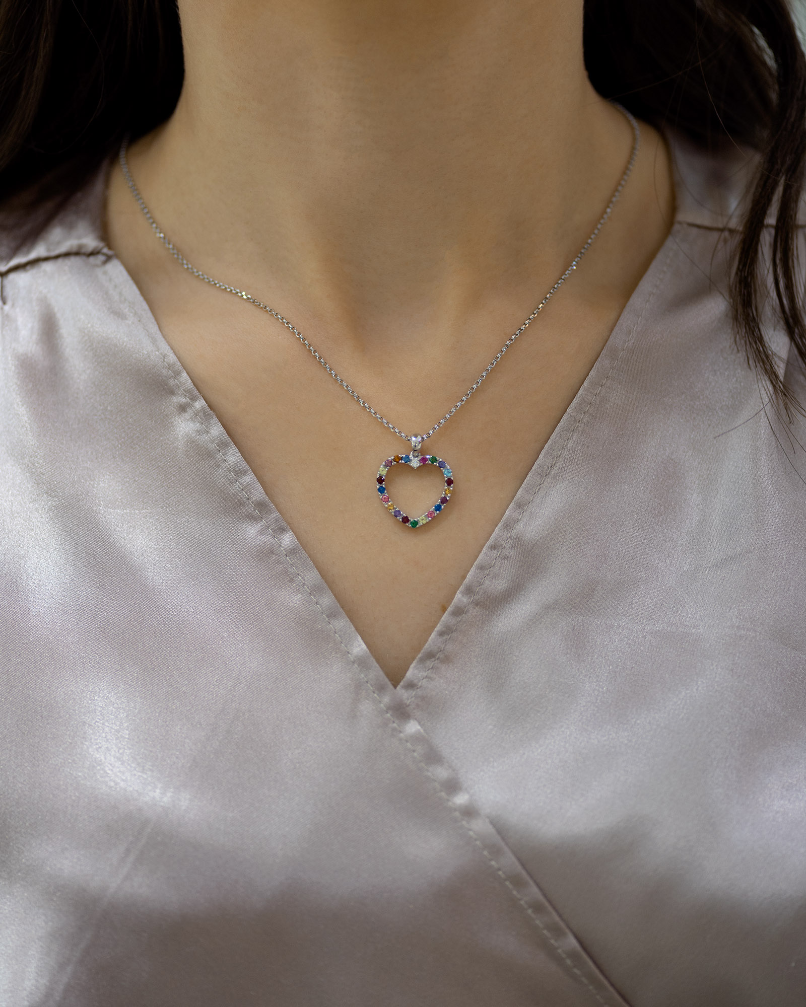 Blistav i elegantan privezak u obliku srca u kombinaciji sa raznobojnim dragim kamenjem sigurno će privući pažnju svojim dizajnom i sjajem. Privesci sa motivom srca su bezvremeni simbol ljubavi u gotovo svim kulturama sveta. Ovo romantično, ručno izrađeno Tutti Frutti srce, večno će blistati na Vašem vratu. Ponesite ga ponosno ili ga poklonite osobi koju volite kako bi je uvek podsećao na Vašu ljubav. Zlatara Andrejević nudi Vam sigurnu online kupovinu, dostavu na kućnu adresu, kao i mogućnost video prezentacije proizvoda.