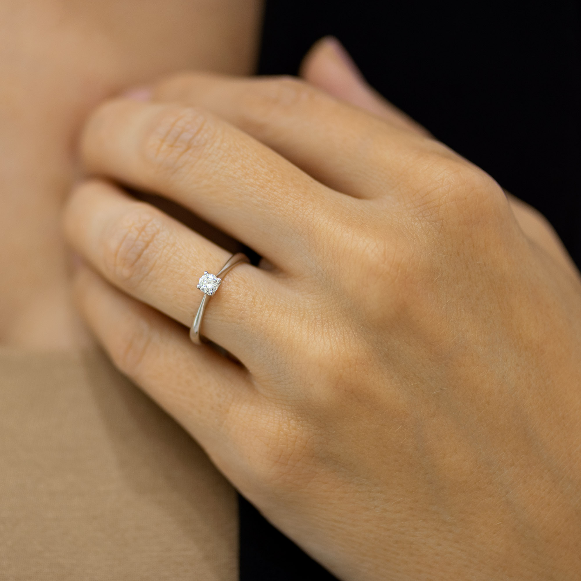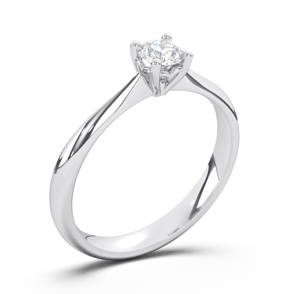 Verenički prsten soliter svedenog dizajna. Četiri obla držača čiji su vrhovi neznatno izduženi tako da drže kamen tako da lepo upija i prelama svetlo. Prsten je napravljen od visokopoliranog zlata čiju boju možete sami da izaberete. Ispod samog kamena je otvor koji propušta svetlo sa više strana, tako da kamen sija divnim sjajem bez obzira da li prima prirodno ili veštačko svetlo. U zlatari Andrejević, nudimo Vam mogućnost da sami izaberete karatažu, čistoću i boju dijamanta, kako biste bili sigurni da će krajnji rezultat biti upravo verenički prsten kakav ste želeli.