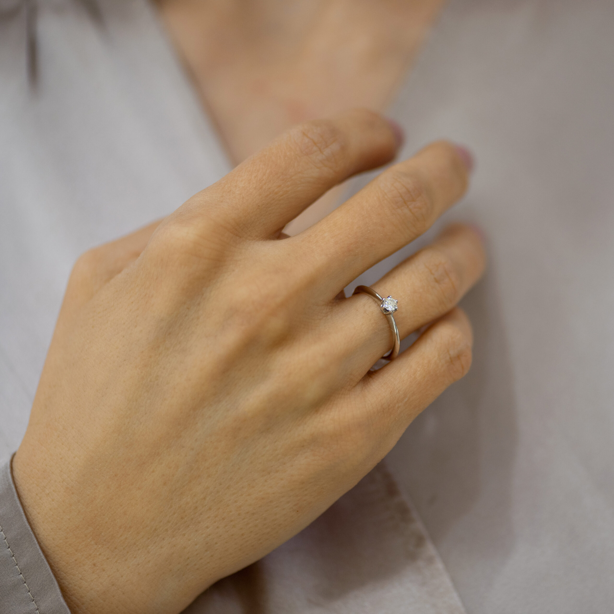 Verenički prsten soliter, krasi ga jedan jedini dijamant izuzetne lepote. Šest držača su ravno brušeni tako da dodatno sjaje dok čvrsto drže dijamant veoma izdignutim kako bi lepše hvatao i prelamao svetlo. Sam prsten može biti napravljen od belog, roze ili žutog zlata, finoće 14k ili 18k. U zlatari Andrejević Vam nudimo mogućnost da birate veličinu i sve ostale karakteristike dijamanta kako biste bili sigurni da će krajnji rezultat biti upravo dijamantski prsten kakav ste želeli.