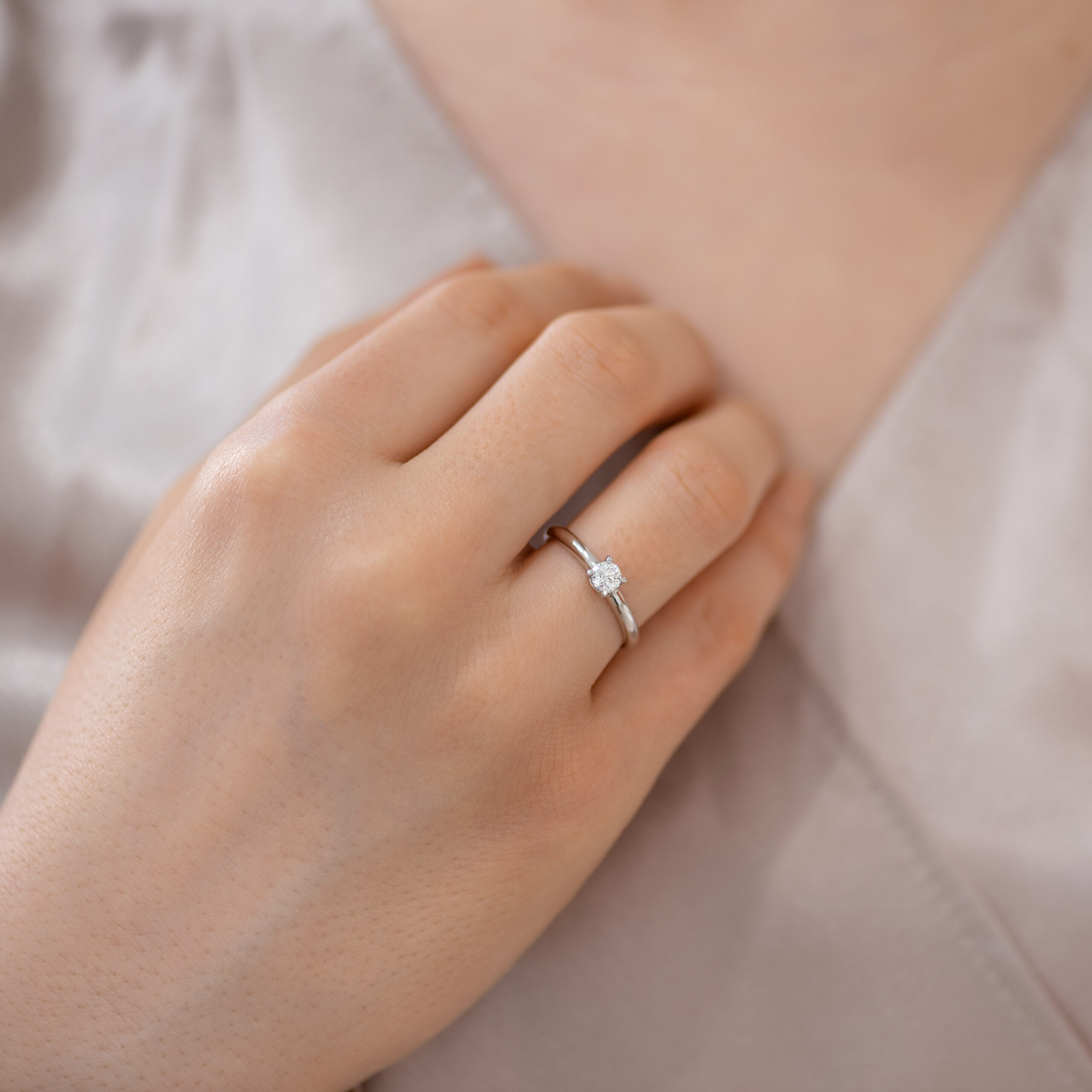 Verenički prsten soliter, oblih ivica i svedenog dizajna. Četiri obla držača čiji su vrhovi neznatno izduženi tako da drže kamen tako da lepo upija i prelama svetlo. Prsten je napravljen od visokopoliranog zlata čiju boju možete sami da izaberete. Ispod samog kamena je otvor koji propušta svetlo sa više strana, tako da kamen sija divnim sjajem bez obzira da li prima prirodno ili veštačko svetlo. U zlatari Andrejević, nudimo Vam mogućnost da sami izaberete karatažu, čistoću i boju dijamanta, kako biste bili sigurni da će krajnji rezultat biti upravo verenički prsten kakav ste želeli.