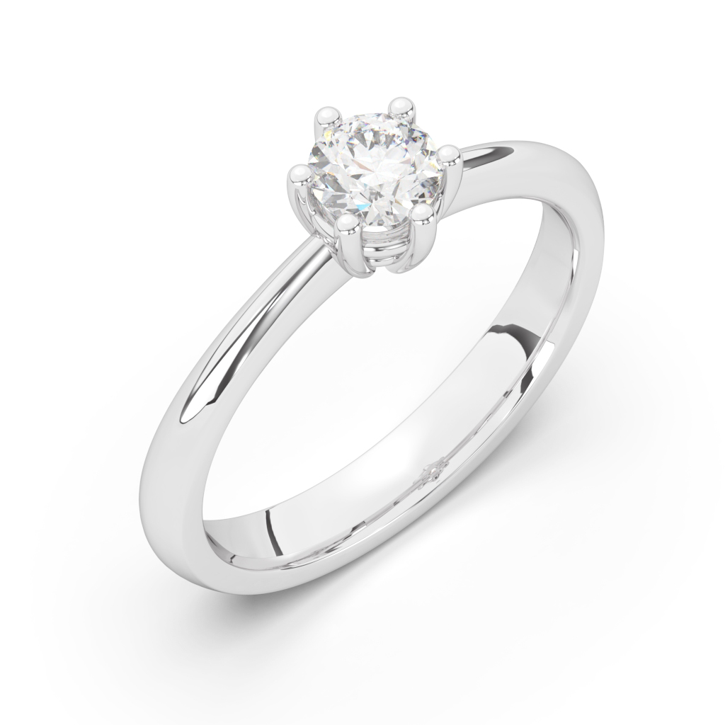 Verenički prsten klasičnog, svedenog dizajna koji krasi dijamant. Dijamant je pričvršćen sa šest oblih držača, a i sama kružnica prstena je u potpunosti zaobljena. GIA sertifikat koji prati ovaj prirodni dijamant garantuje tačnost navedenih podataka. Za bogati efekat odblesaka svetlosti su zaslužne idealne proporcije dijamanta i perfektna obrada prstena. Sam prsten može biti napravljen od belog, roze ili žutog zlata, finoće 14k ili 18k.