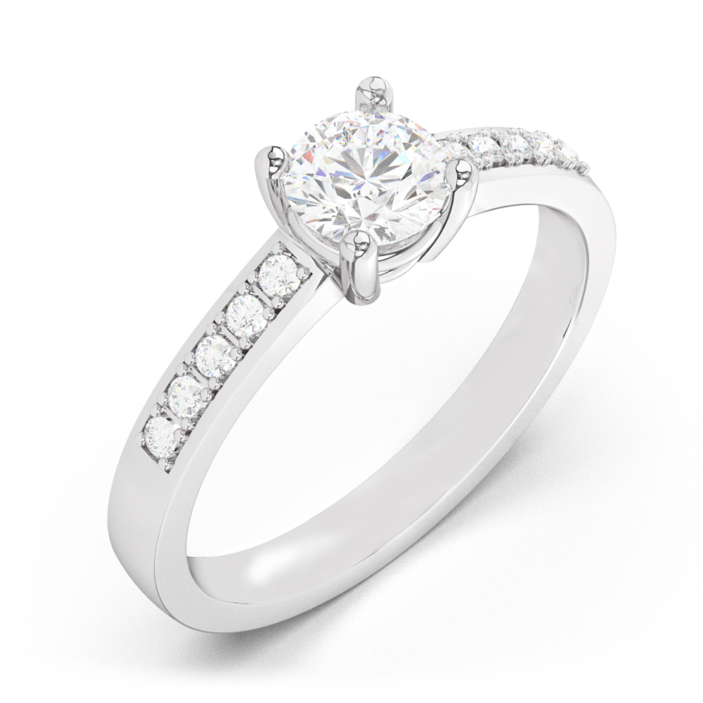 Verenički prsten klasičnog dizajna, ukrašen sa čak 11 brilijanata. Sa svake strane većeg centralnog dijamanta nalazi se po pet manjih od kojih svaki ima po četiri držača. Svaki od manjih dijamanta ima po četiri držača i svi su usađeni duboko u kružnicu prstena pa se neće kačiti za odeću. Centralni dijamant je veće karataže i osiguran je sa četiri držača oblo brušenih vrhova. GIA sertifikat koji prati ovaj prirodni dijamant garantuje tačnost navedenih podataka. Za bogati efekat odblesaka svetlosti su zaslužne idealne proporcije dijamanta i perfektna obrada prstena. Sam prsten može biti napravljen od belog, roze ili žutog zlata, finoće 14k ili 18k.