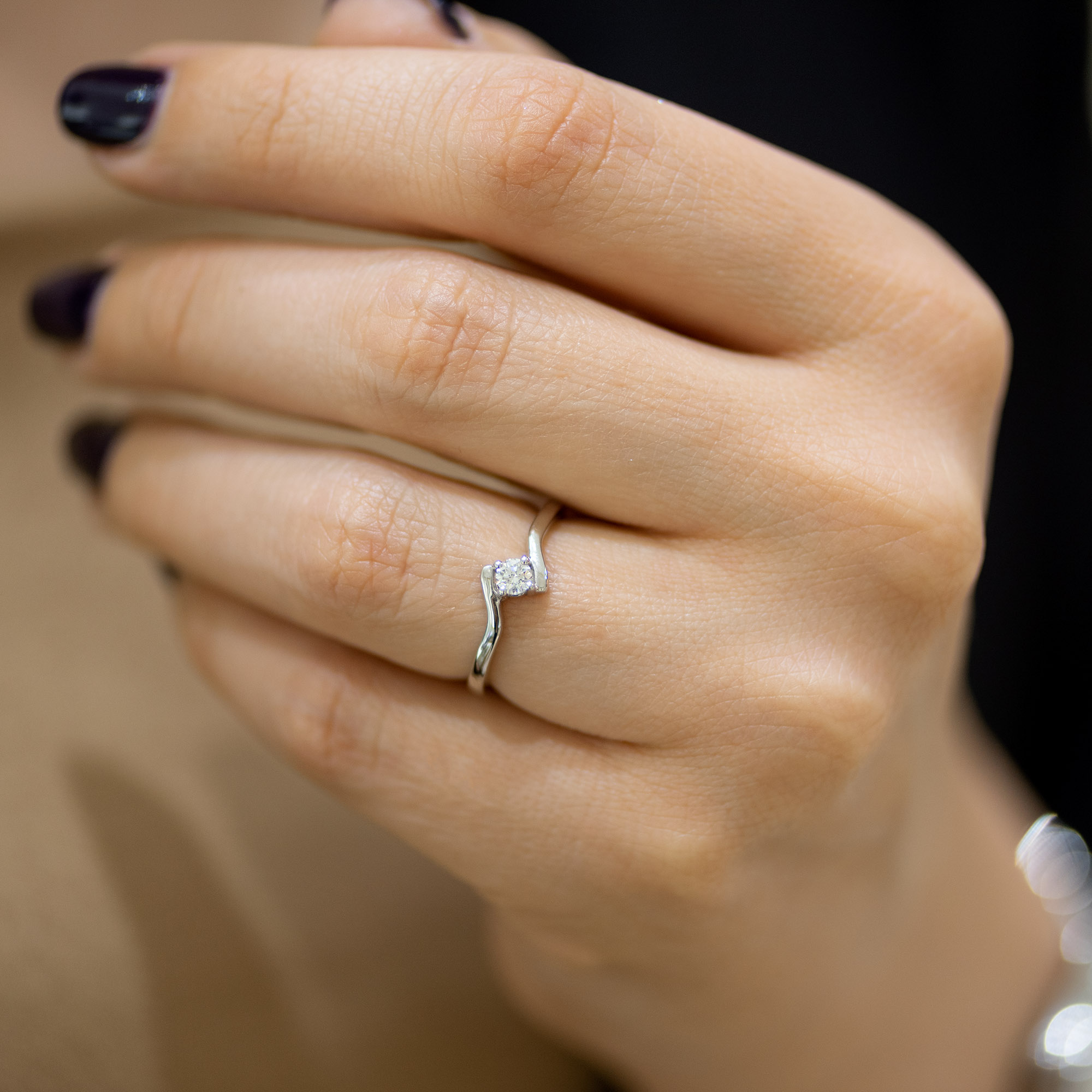 Verenički prsten neobičnog, modernog dizajna i nežnih linija. Belo zlato, roze ili žuto, izbor je Vaš. Ugrađen dijamant je okruglo brušen i takav kamen zovemo BRILIJANT. Savršene proporcije mu obezbeđuju izvanredan sjaj i blistavost. Posetite zlatare Andrejević, Beograd.