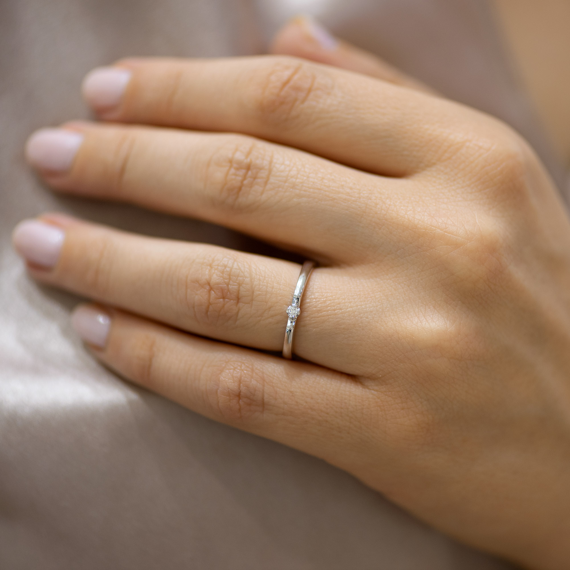 Verenički prsten nesvakidašnjeg dizajna koji kombinuje moderno sa elegantnim. Napravljen od visokokvalitetnog 14-karatnog zlata, prsten je jednostavan ali ga krasi neuobičajeno ufasetiran dijamant. Na kružnici prstena nalaze se držači koji nalikuju na skulpturu, a oko njih i same kružnice ima prostora kako bi kamen bolje došao do izražaja. U zlatari Andrejević, nudimo Vam mogućnost da sami izaberete karatažu, čistoću i boju dijamanta, kao i boju zlata, kako biste bili sigurni da će krajnji rezultat biti upravo verenički prsten kakav ste želeli.