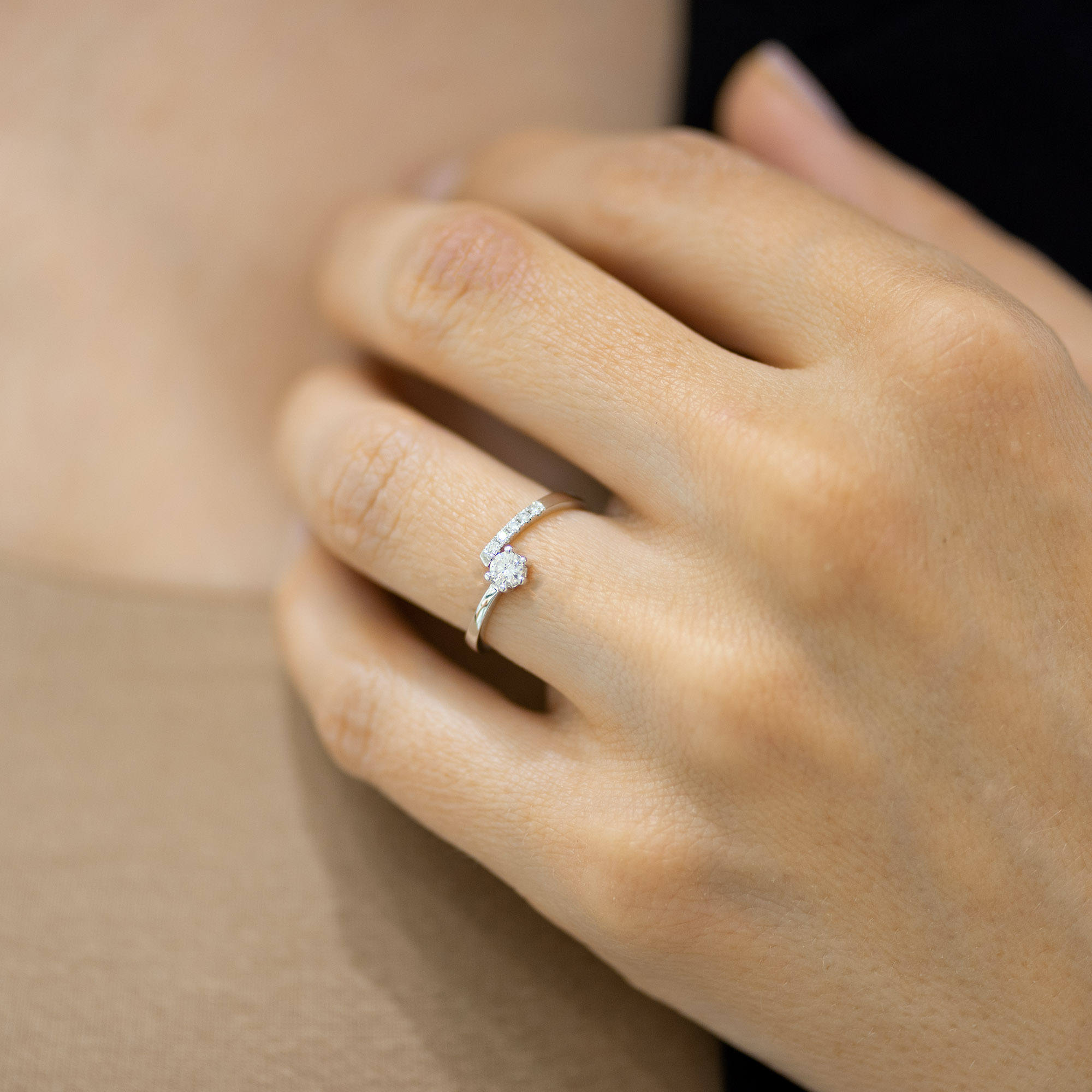 Verenički prsten modernog dizajna ukrašen sa šest brilijanata. Kružnica prstena je prekinuta i kraci naležu jedan na drugi. Kraj donjeg kraka krasi jedan briijant izuzetnog sjaja, pričvršćen sa šest držala oblih vrhova. U drugi krak je ufasovano pet manjih brilijanata na kreativan način, tako da drago kamenje nema tradicionalne držače već vertikalne ureze u zlatu. U zlatari Andrejević, nudimo Vam mogućnost da sami izaberete karatažu, finoću zlata, čistoću i boju dijamanta, kao i boju zlata, kako biste bili sigurni da će krajnji rezultat biti upravo dijamantski prsten kakav ste želeli.