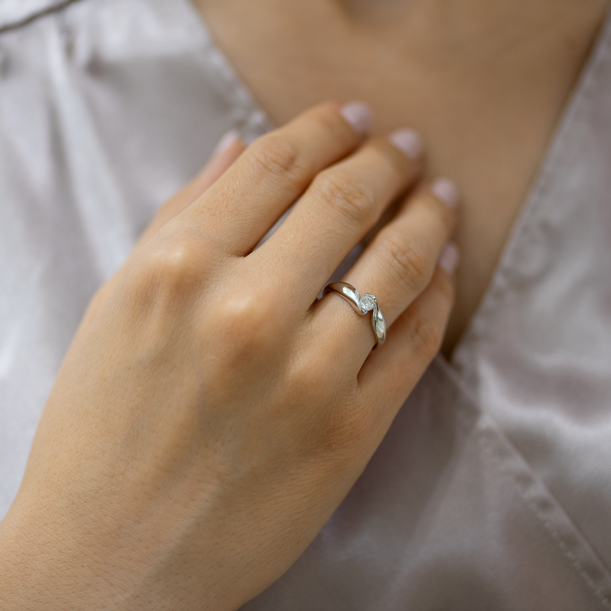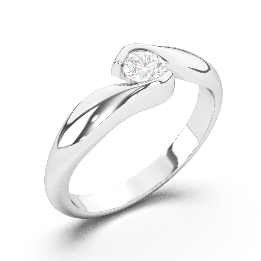 Verenički prsten modernog i neobičnog dizajna sa jednim dijamantom. Prsten je napravljen od kvalitetnog 14-karatnog zlata, dok boju možete sami da birate: belo, žuto, ili roze. Kružnica prstena je neobičnog oblika, krajevi su prekinuti kako bi “obgrlili“ kamen, a kraci se prvo šire, a zatim sasvim sužavaju na delu gde je ufasovan kamen. Sam kamen nema standardne držače, već ga pridržavaju kraci kružnice. U zlatari Andrejević, nudimo Vam mogućnost da sami izaberete karatažu,finoću zlata, čistoću i boju dijamanta, kao i boju zlata, kako biste bili sigurni da će krajnji rezultat biti upravo verenički prsten kakav ste želeli.