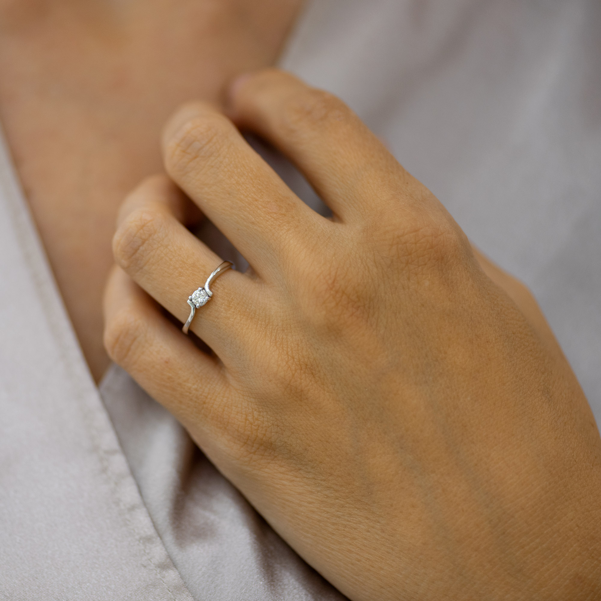 Dijamantski verenički prsten od belog zlata. Sam prsten može biti napravljen od belog, roze ili žutog zlata, finoće 14k ili 18k. U zlatari Andrejević Vam nudimo mogućnost da birate veličinu i sve ostale karakteristike dijamanta kako biste bili sigurni da će krajnji rezultat biti upravo dijamantski prsten kakav ste želeli.