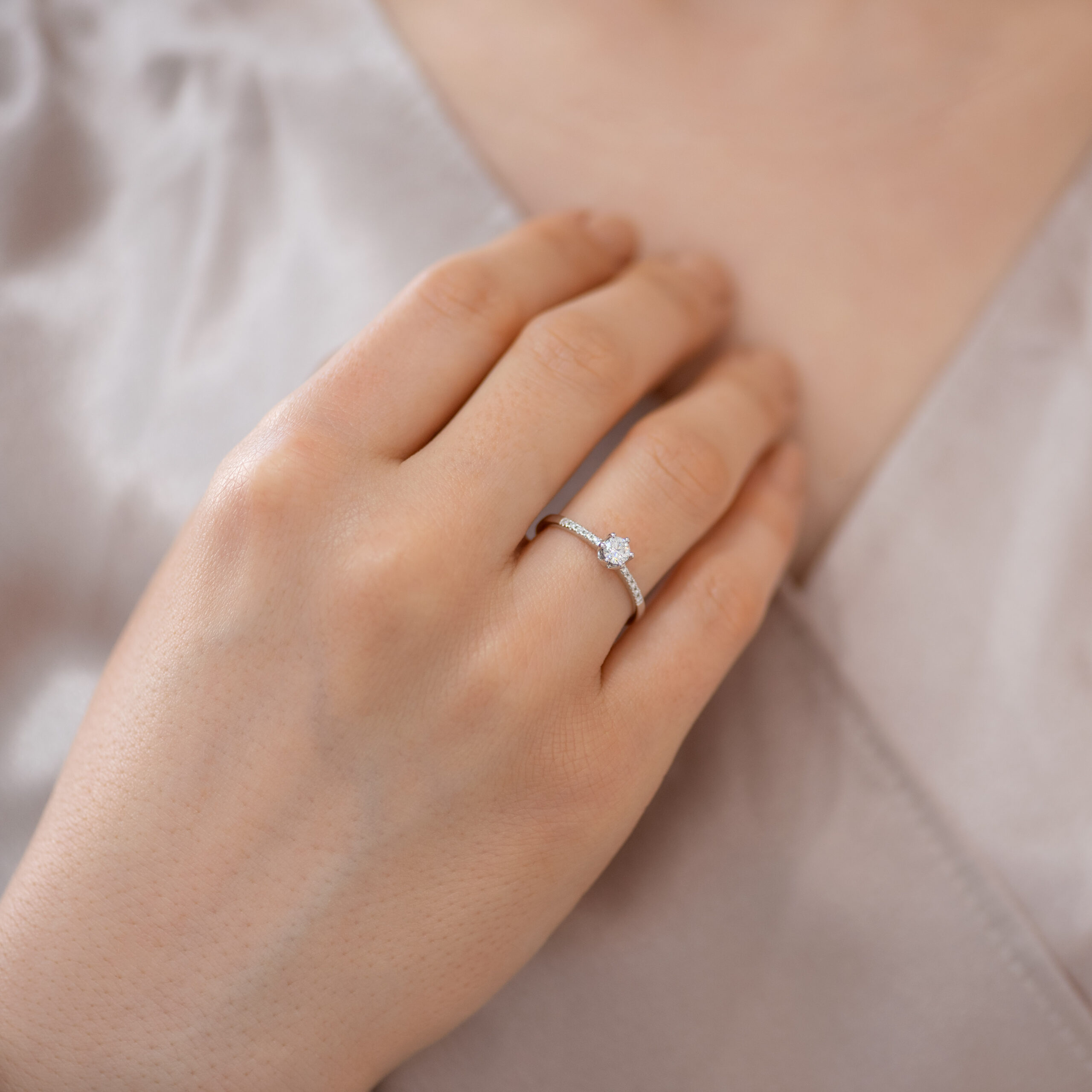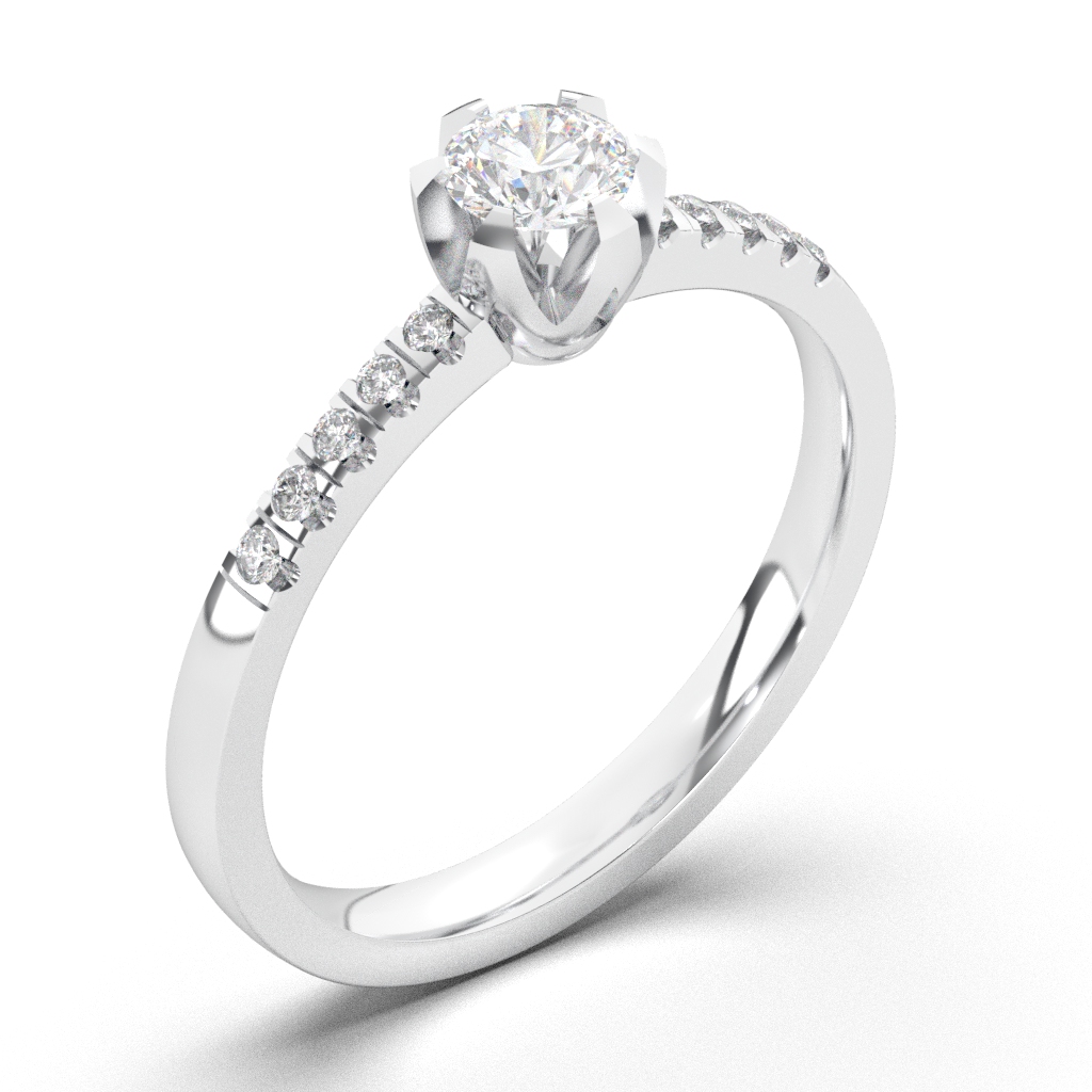 Ovaj lep verenički prsten od zlata ima centralni dijamant odlične boje i čistoće a dodatno ga ukrašavaju 10 brilijanata na šini sa strane. Sam prsten može biti napravljen od belog, roze ili žutog zlata, finoće 14k ili 18k. U zlatari Andrejević Vam nudimo mogućnost da birate veličinu i sve ostale karakteristike dijamanta kako biste bili sigurni da će krajnji rezultat biti upravo dijamantski prsten kakav ste želeli.