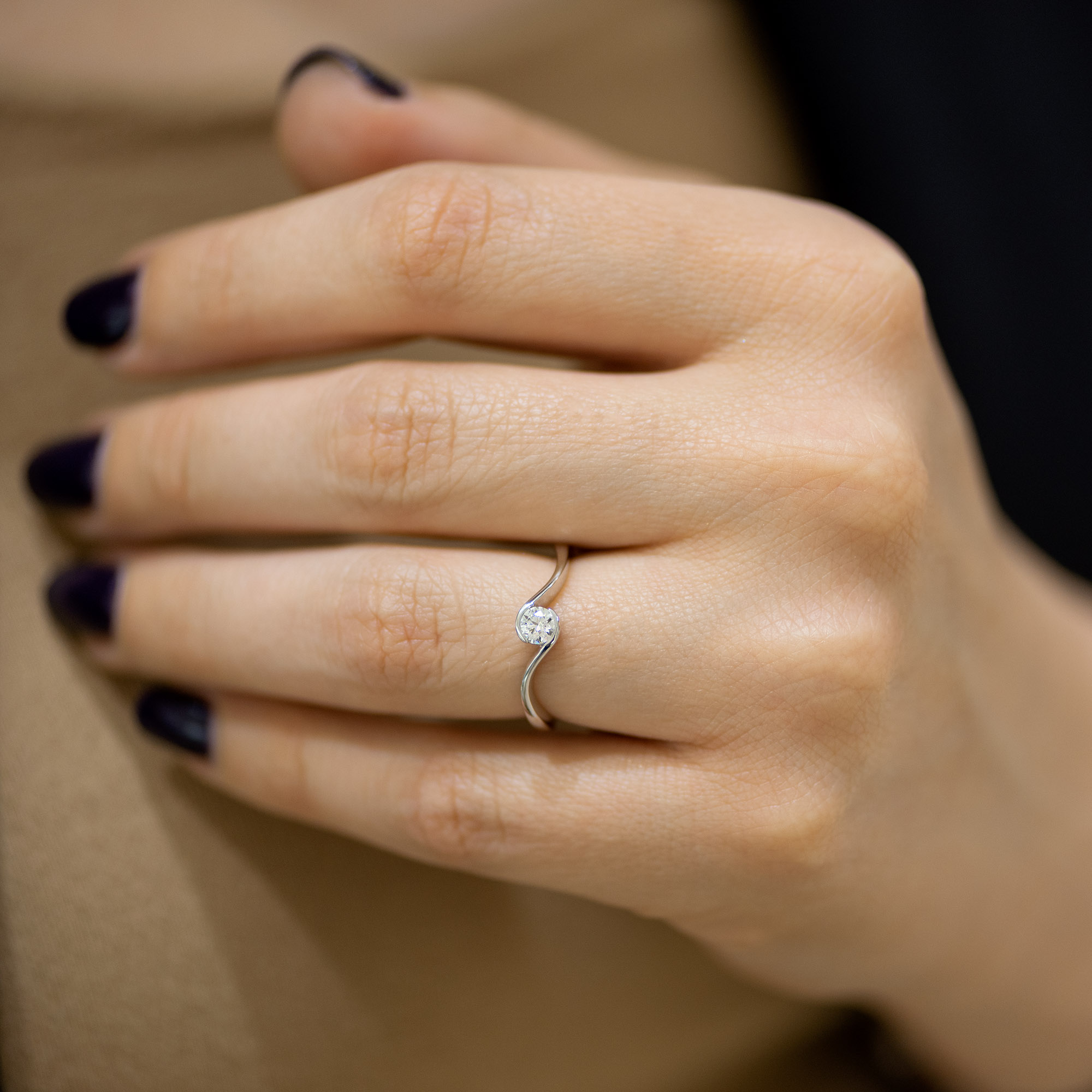Ono što ovaj komad nakita izdvaja od klasičnog vereničkog prstenja jeste nešto nepravilniji oblik. Blaga modifikacija tela prstena ukrašena je jednim blistavim brilijantom. Sam prsten može biti napravljen od belog, roze ili žutog zlata. U zlatari Andrejević Vam nudimo mogućnost da birate veličinu i sve ostale karakteristike dijamanta kako biste bili sigurni da će krajnji rezultat biti upravo dijamantski prsten kakav ste želeli.