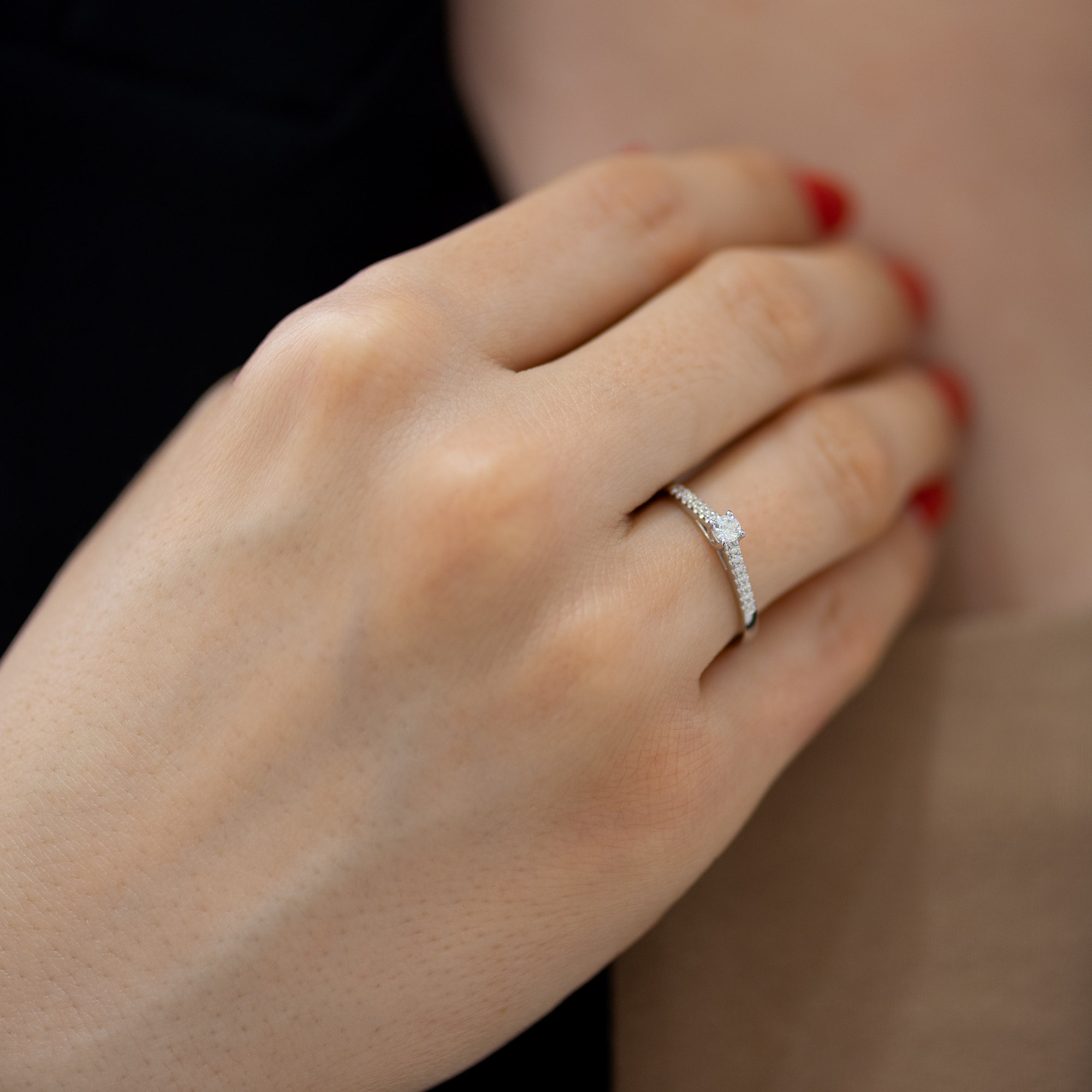 Izuzetno elegantan i modernog dizajna, ovaj verenički prsten je onaj koji zadovoljava ukuse i najprobirljivijih dama. Kreator je iskusan u dizajniranju vanremenskih komada koji bi simbolizovali večnu ljubav, te otud i ovakav nezaboravan.