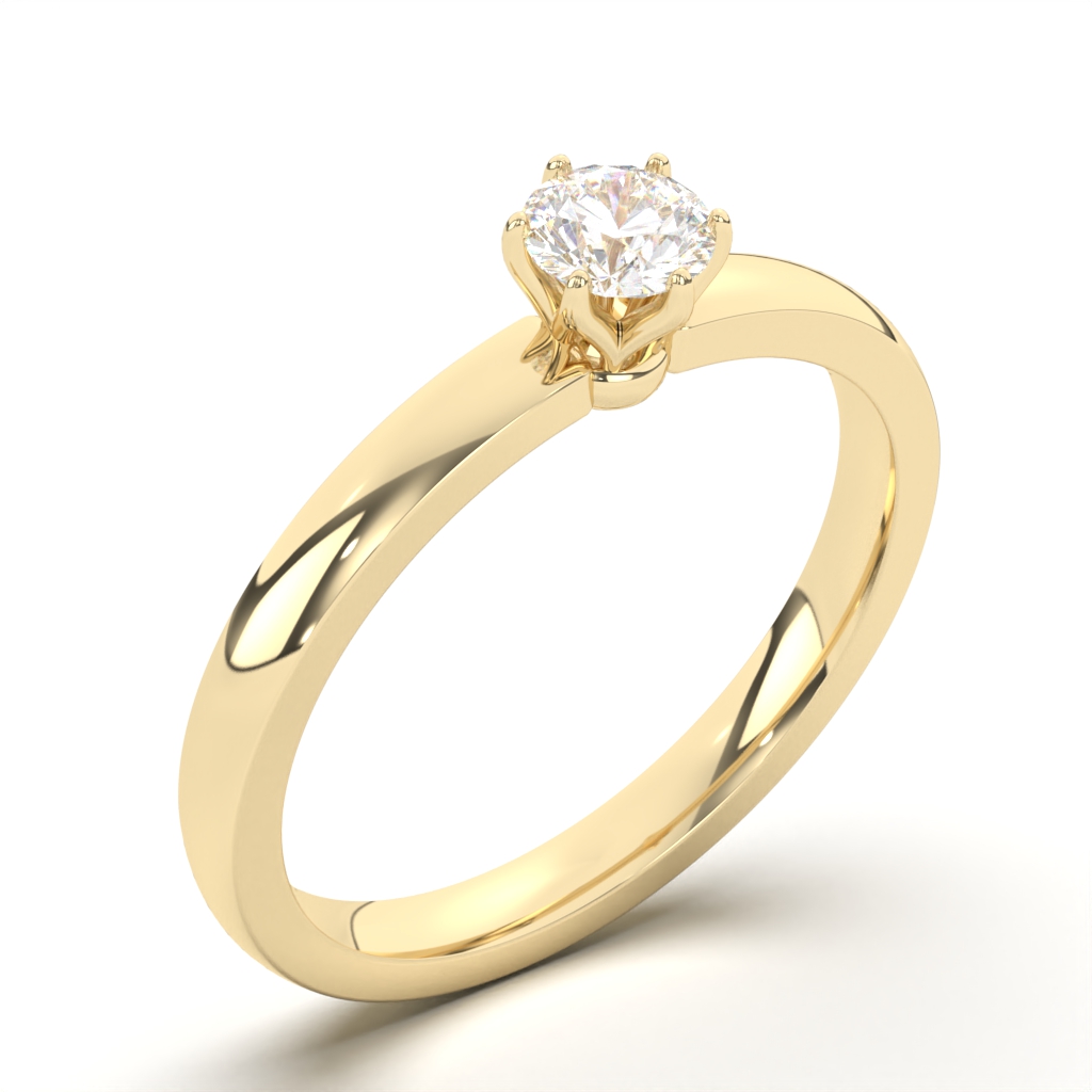 Verenički prsten soliter, oblih ivica i jednostavnog dizajna koji odoleva vremenu i prkosi prolaznim trendovima. Šest stilizovanih držača odlično se uklapaju sa stranicama dijamanta i dodatno doprinose bogatom efektu odblesaka svetlosti. U zlatari Andrejević, nudimo Vam mogućnost da sami izaberete karatažu, čistoću i boju dijamanta, kao i boju zlata, kako biste bili sigurni da će krajnji rezultat biti upravo verenički prsten kakav ste želeli.