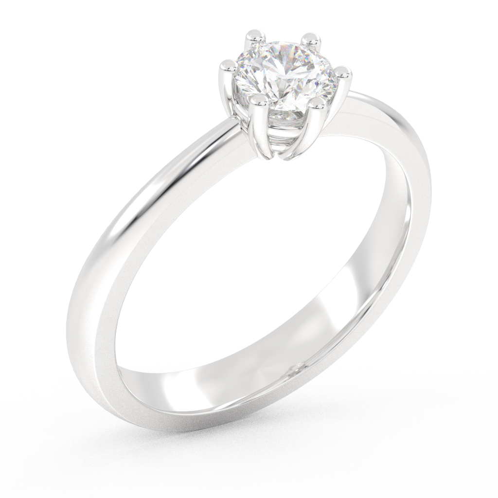 Verenički prsten soliter, klasičnog, svedenog dizajna koji krasi jedan dijamant brilijantskog reza (brilliant cut). Prsten je napravljen od najkvalitetnijeg 14-karatnog zlata čiju boju možete sami da izaberete. Dijamant je pričvršćen sa šest oblih držača koji ga izdižu i čine da lepše upija i reflektuje svetlo. Sama kružnica prstena je u potpunosti zaobljena i prijatna za nošenje. U zlatari Andrejević, nudimo Vam mogućnost da sami izaberete karatažu, čistoću i boju dijamanta, kako biste bili sigurni da će krajnji rezultat biti upravo verenički prsten kakav ste želeli.