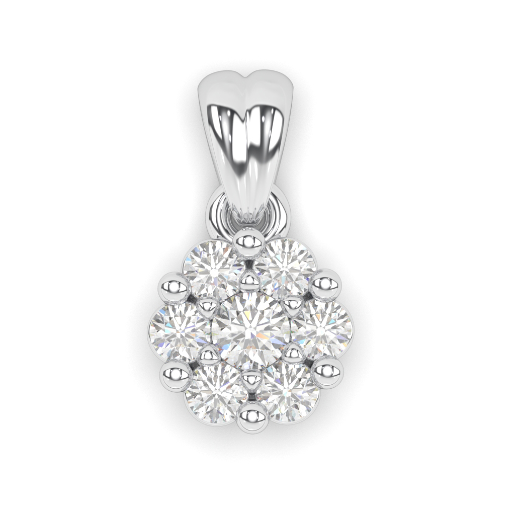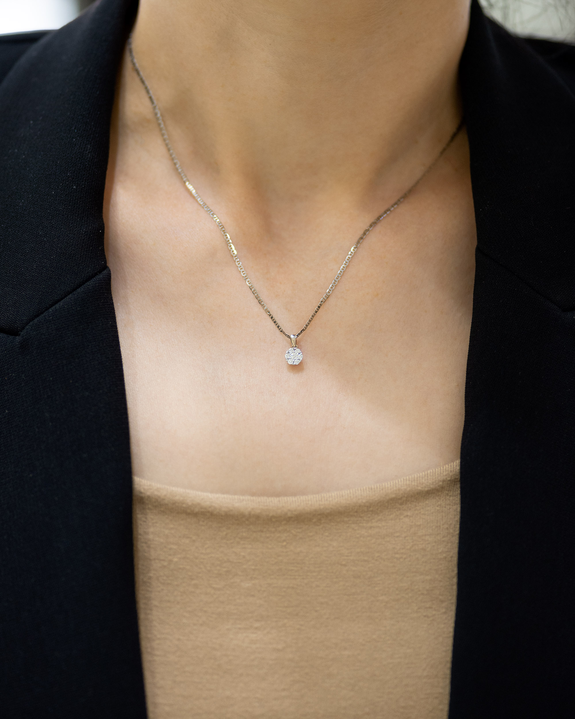 Privezak od zlata u obliku cveta koji krasi čak sedam blistavih brilijanata. Privezak je izrađen od 14-karatnog zlata izuzetnog kvaliteta i ima klasičnu alku kroz koju može da prođe tanki lančić. Centralni brilijant je neznatno veće karataže i ima šest držača oblo brušenih vrhova. Okružuje ga šest manjih brilijanata postavljenih u krug tako da nalikuju svetlucavom cvetu. Zlatni privesci zlatare Andrejević mogu biti izrađeni u bilo kojoj od tri boje zlata: beloj, roze, ili žutoj. Uz to, u zlatari Andrejević, nudimo Vam mogućnost da sami izaberete karatažu, čistoću i boju dijamanta kako biste bili sigurni da će privesci biti upravo onakvi kakve ste želeli.