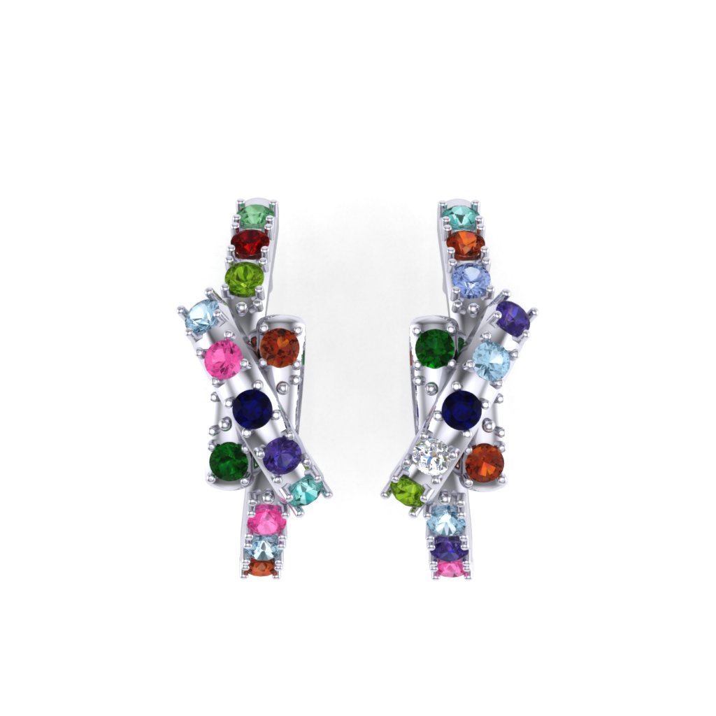 Minđuše od zlata iz poznate kolekcije Tutti Frutti u obliku kratkih, ravnih linija koje se ukrštaju. Jednostavne i efektne, bogato ukrašene raznbojnim draguljima, ove zlatne minđuše kače se uz pomoć klasičnih šrafića. U zlatari Andrejević, nudimo Vam mogućnost da sami izaberete karatažu, čistoću i boju dijamanata i drugog dragog kamenja, kao i boju zlata, kako biste bili sigurni da će krajnji rezultat biti upravo minđuše kakve ste želeli.