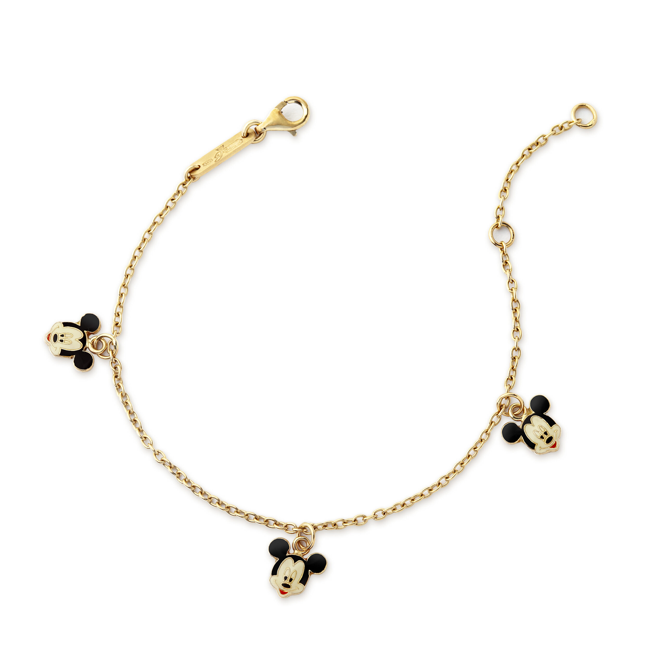 Narukvica od zlata sa privescima u obliku Miki Mausa iz ekskluzivne Disney kolekcije nakita. Narukvica je napravljena od zlata i emajla i ima dve alkice koje radi lakšeg podešavanja veličine. Zlatne narukvice zlatare Andrejević najvećeg su kvaliteta, pa ćete ih dugo nositi, čuvati i voleti.