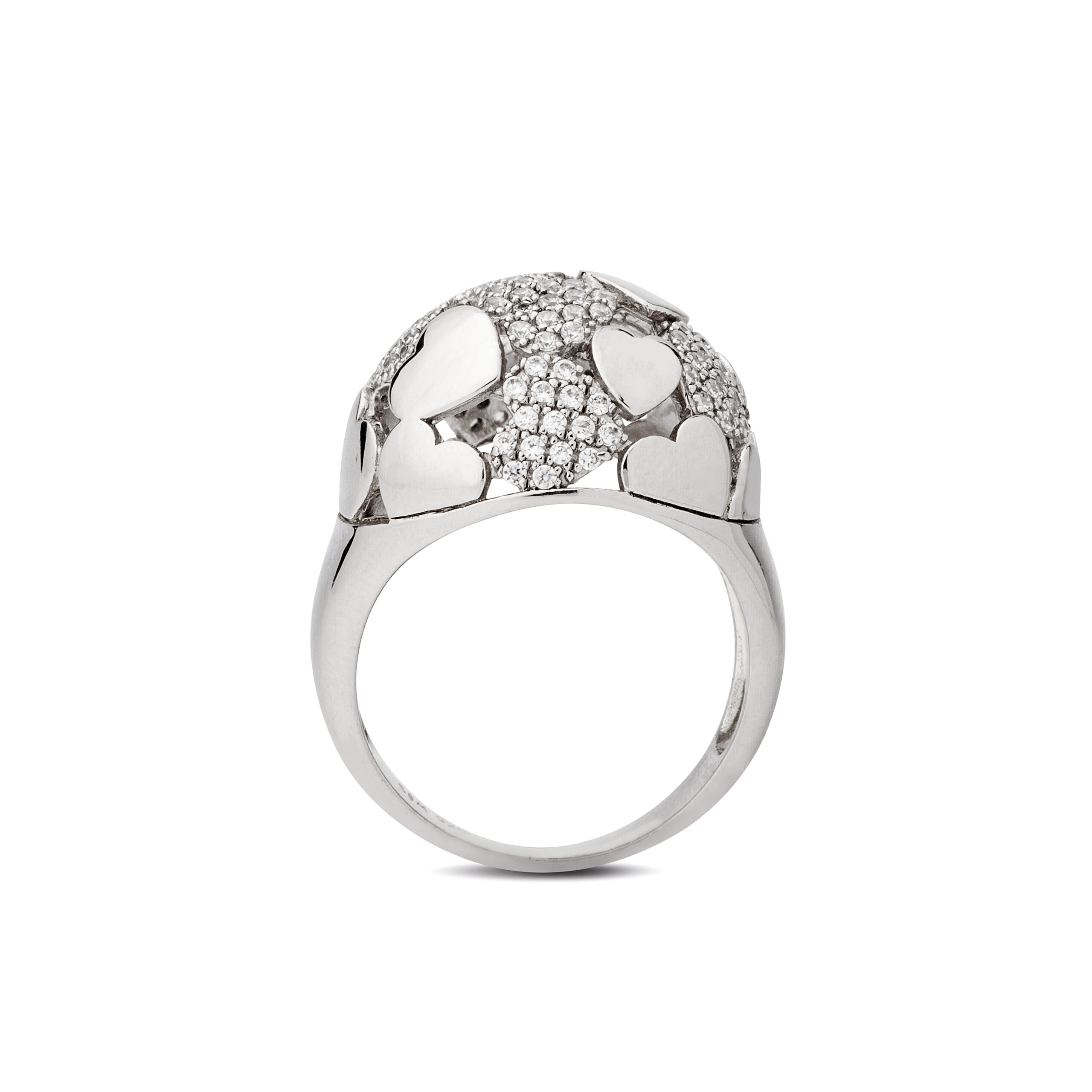 Prsten od srebra renomiranog nemačkog brenda Saint Maurice. Ovaj bombé srebrni prsten ima ureze u obliku srca od kojih su neki ukrašeni cirkonima.
